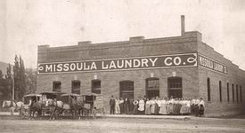 After working with his mother in Bozeman Steam Laundry, Mary Hagen’s oldest son Joseph moved to Missoula in 1908, and opened the Model Laundry in the basement of the Dorothy Apartments. In 1945, Joseph Hagen moved into a new building on 111 East Spruce Street and called the new operation Missoula Laundry. Mary’s other son moved to Seattle, where he and his four sons established a chain of laundries in Washington. Mary’s daughter Clara married John Sullivan, an employee of Missoula Laundry. John and Clara moved to Yakima, Washington, founding Peerless Laundry and Sullivan’s Cleaners with their three sons. Peerless has been sold but Sullivan’s continues to operate today. Another daughter, Elizabeth, married a Potomac rancher named Mike Flynn, and worked as a seamstress at the Missoula Laundry for many years.
